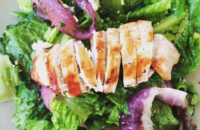 - Grilled chicken and red onion salad